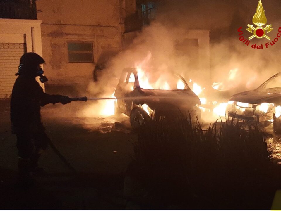 CAMPI SALENTINA – Un’altra notte di fuoco a Campi Salentina. Intorno alle 2.52, un incendio ha interessato quattro auto parcheggiate in via Calabria, angolo via Palma, coinvolgendo anche una quinta vettura. Le fiamme hanno completamente distrutto tre mezzi – una Hyundai Atos Prime, una Volkswagen T-Cross e una Fiat 500 – mentre una Panda è rimasta parzialmente danneggiata. Più contenuti i danni a un’altra Fiat 500 colpita per irraggiamento. Provvidenziale l’intervento dei vigili del fuoco del distaccamento di Veglie, che hanno domato le fiamme evitando conseguenze peggiori. Sul posto anche i carabinieri per chiarire le cause, al momento ancora ignote.