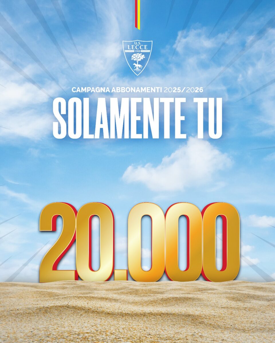 LECCE – Nuovo prestigioso traguardo per la campagna abbonamenti del Lecce, che dopo circa 48 ore dall’apertura della vendita libera, ha tagliato quota 20mila sottoscrizioni. E sarà attiva fino al 27 agosto.