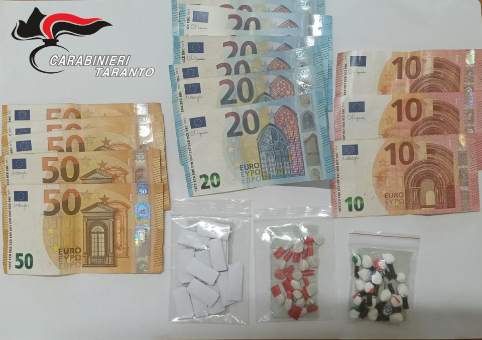 Nel corso della nottata dello scorso 5 settembre, durante un servizio di controllo del territorio predisposto per il contrasto allo spaccio di droga nei luoghi di aggregazione giovanile, i Carabinieri della Sezione Radiomobile della Compagnia di Taranto hanno arrestato in flagranza di reato un 21enne della provincia di Brindisi, trovato in possesso di numerose dosi di sostanze stupefacenti. Il giovane è stato notato in una zona del centro particolarmente frequentata da adolescenti e ragazzi, soprattutto nelle ore serali e notturne. Alla vista dei militari dell’Arma, alcuni coetanei si sono dati alla fuga, mentre il 21enne avrebbe cercato di defilarsi con atteggiamento disinvolto, attirando però l’attenzione della pattuglia. Fermato per un controllo, il giovane avrebbe mostrato segni di evidente nervosismo, tentando di disfarsi di una bustina contenente 19 dosi di sostanza stupefacente probabilmente del tipo cocaina, prontamente recuperata. La successiva perquisizione personale, ha portato al rinvenimento di ulteriori 16 dosi di MDMA e 13 dosi di ketamina, occultate nelle tasche dei pantaloni. Nel borsello che portava con sé è stata trovata anche una somma in contanti di 420 euro. Complessivamente, sono state sequestrate 48 dosi di droga per un peso totale di circa 15 grammi, tra cocaina, MDMA e ketamina. Alla luce della quantità e varietà delle sostanze, della suddivisione in dosi, della modalità di occultamento e del contesto urbano in cui è avvenuto il fermo, il giovane è stato arrestato per il reato ipotizzato di detenzione ai fini di spaccio di sostanze stupefacenti. Su disposizione del Pubblico Ministero di turno presso la Procura della Repubblica di Taranto, è stato sottoposto alla misura cautelare degli arresti domiciliari presso la propria abitazione. La sostanza stupefacente è stata inviata al Laboratorio Analisi Sostanze Stupefacenti (LASS) del Comando Provinciale per gli accertamenti tecnici; il denaro sarà versato su un conto corrente infruttifero a disposizione dell’Autorità Giudiziaria. Il procedimento è attualmente nella fase delle indagini preliminari e l’indagato deve considerarsi presunto innocente fino a eventuale sentenza definitiva di condanna.