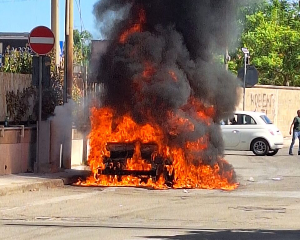 Leverano, auto prende fuoco in strada: attimi di paura in via Goito