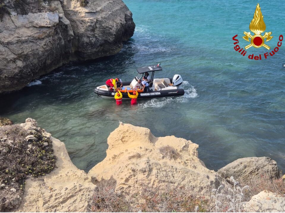 La donna, bloccata sulla scogliera e dolorante per i traumi riportati, non poteva essere recuperata via terra a causa della conformazione impervia del tratto costiero. È stato quindi necessario l’intervento congiunto della Guardia Costiera e dei Vigili del Fuoco. Sul posto sono intervenuti il gommone veloce G.C.B. 195 e la motovedetta CP768, mentre da Lecce è arrivata una squadra dei Vigili del Fuoco con personale specializzato nel soccorso acquatico di superficie.