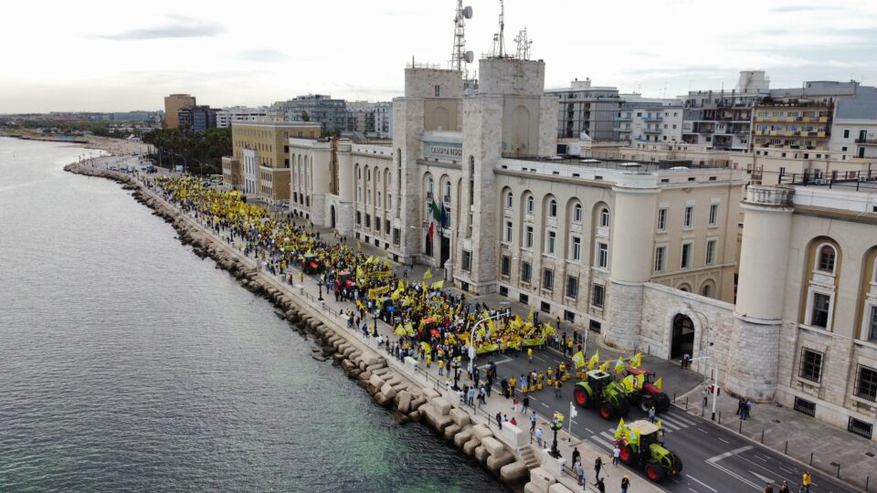 E’ partito dal Lungomare antistante la spiaggia cittadina di Pane e pomodoro il corteo degli agricoltori del grano, scesi in piazza anche a Bari per protestare contro il boom di importazioni dall’estero, a causa delle quali il prezzo del prodotto italiano è crollato.Migliaia di agricoltori, provenienti da sei regioni del centro-sud, si sono radunati con in testa alcuni trattori. I manifestanti espongono cartelli che recitano, fra le altre cose, “Salviamo il grano italiano”, “Senza agricoltori non c’è cibo”, “Sos grano italiano in difesa del reddito degli agricoltori e della filiera”.