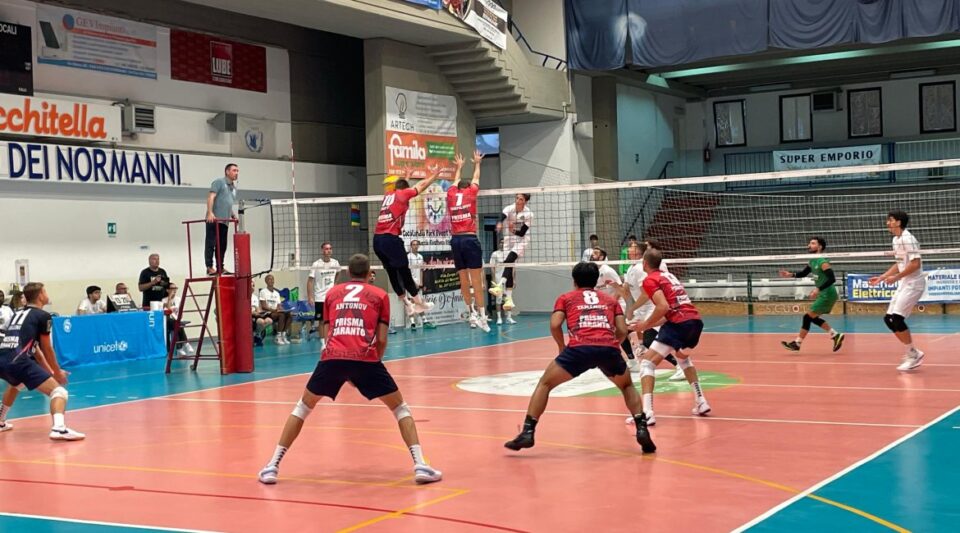 TARANTO – Il test amichevole, ultimo allenamento congiunto prima dello start della regular season, tra Prisma Taranto Volley e la Romeo Sorrento si è chiuso 3-1 per gli ionici con i parziali 25-18, 17-25, 25-17, 25-19. Una partita che aveva anche un altro significato trattandosi di un match di beneficenza organizzato dalla Scuola Pallavolo San Vito.