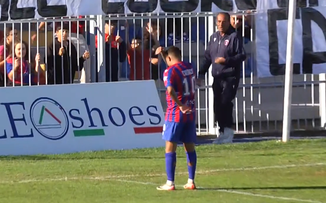 Al 22′ il vantaggio del Casarano: il Cerignola perde ingenuamente i pallone e il Casarano parte in contropiede: pallone di Ferrara per Chiricò che non sbaglia, 1-0.