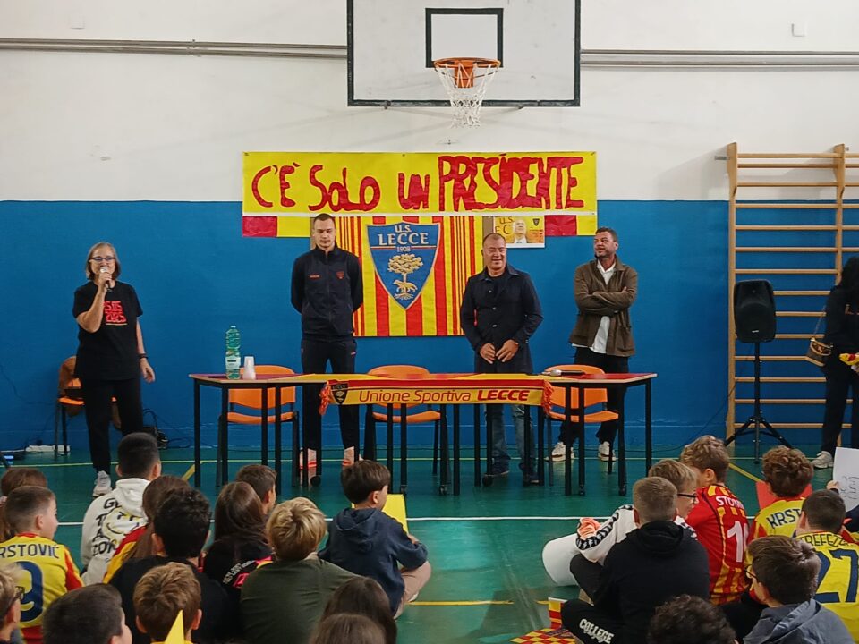 CALCIO – Nuovi e interessanti appuntamenti per il progetto scolastico dell’U.S. Lecce, che nei giorni scorsi ha fatto tappa in due istituti comprensivi locali. Il Presidente Sticchi Damiani, il Team Manager Vino e Štulić sono stati travolti dall’entusiasmo degli studenti di Martano, mentre il Polo 1 di Nardò ha accolto con grande euforia Früchtl e Banda. Questa è solo la prima di una serie di incontri che proseguiranno per tutto l’anno.