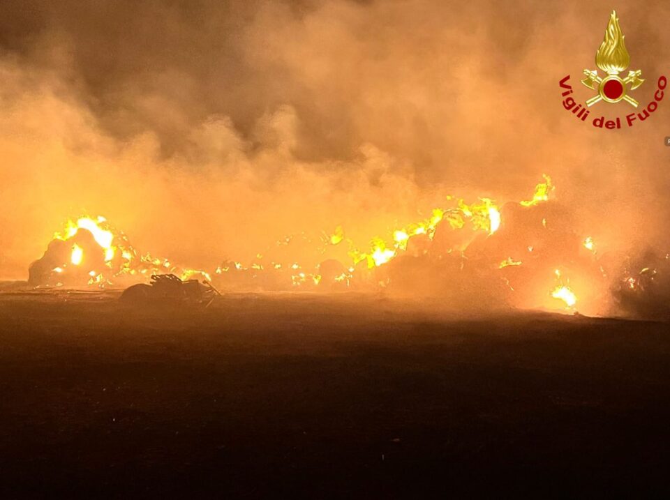 Sul posto sono intervenute cinque squadre operative dei Vigili del Fuoco, coordinate dal Comando provinciale, che hanno lavorato a lungo per domare il rogo e impedire che il fuoco si estendesse alle rotoballe adiacenti e alle aree circostanti. L’intervento è stato reso particolarmente complesso dalla rapida propagazione delle fiamme, favorita dal materiale altamente combustibile, e dalla densa colonna di fumo visibile a grande distanza.