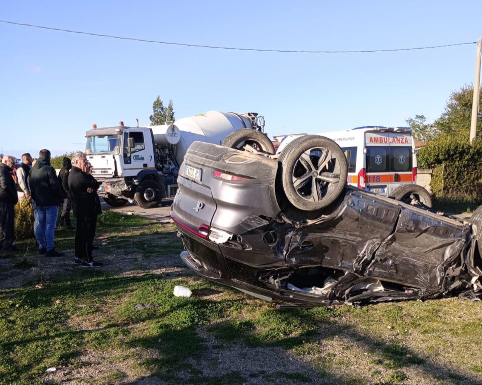 L’impatto è stato particolarmente violento: l’auto, dopo la collisione, si è ribaltata finendo la corsa sul ciglio della strada.