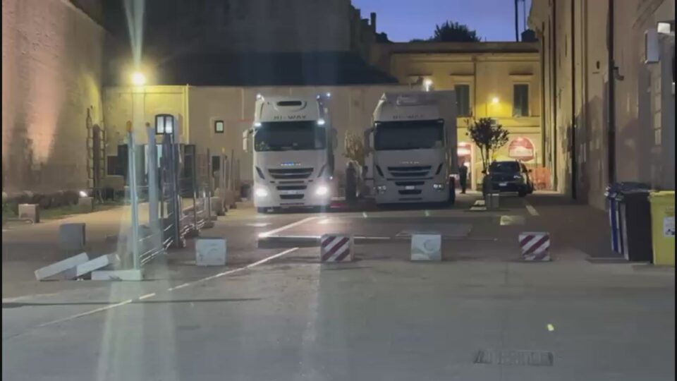 LECCE – Due Tir in piazza Libertini entrati per effettuare le operazioni di carico e scarico delle attrezzatura di scena nell’area retrostante i teatri e la preoccupazione di alcuni cittadini per quelle che potrebbero essere le conseguenze per la nuova pavimentazione in granigliato architettonico con cui è stato effettuato il restyling dell’area liberata dal cantiere meno di un anno addietro. Le segnalazioni arrivano allo sportello di Dillo a Telerama per documentare quanto stia accadendo in queste ore nello spazio che si trova a ridosso del cantiere in via di ultimazione. La domanda che si pone chi ha inviato la segnalazione è anche se sia possibile far entrare contemporaneamente due mezzi pesanti di quelle dimensioni. E ancora: per effettuare la manovra ed uscire dalla piazza, i Tir potrebbero avere bisogno di superare l’area di cantiere delimitata dalle transenne dove la pavimentazione non è carrabile? Una presenza, quella dei due Tir che non è passata per nulla inosservata, tanto da spingere più di qualcuno a chiedere delucidazioni. La nuova pavimentazione, quella dell’area liberata dal cantiere e resa fruibile anche con arredi complementari, è stata pensata e successivamente testata per sopportare il passaggio proprio di mezzi pesanti e consentire di fatto le operazioni di carico e scarico delle attrezzature sceniche per gli spettacoli in programma nei due vicini teatri che affacciano nella parte retrostante su piazza Libertini.
