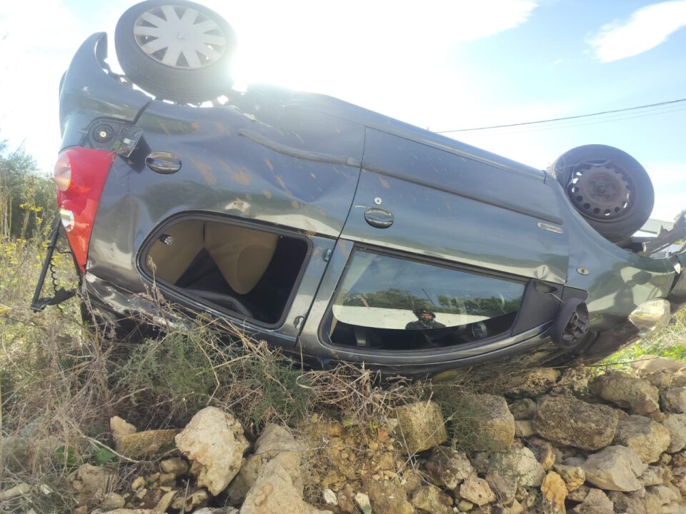 Incidente stradale nel pomeriggio in via Scalelle a Gallipoli, dove una Peugeot 106 è uscita di strada per cause ancora in fase di accertamento, ribaltandosi in un terreno adiacente.
