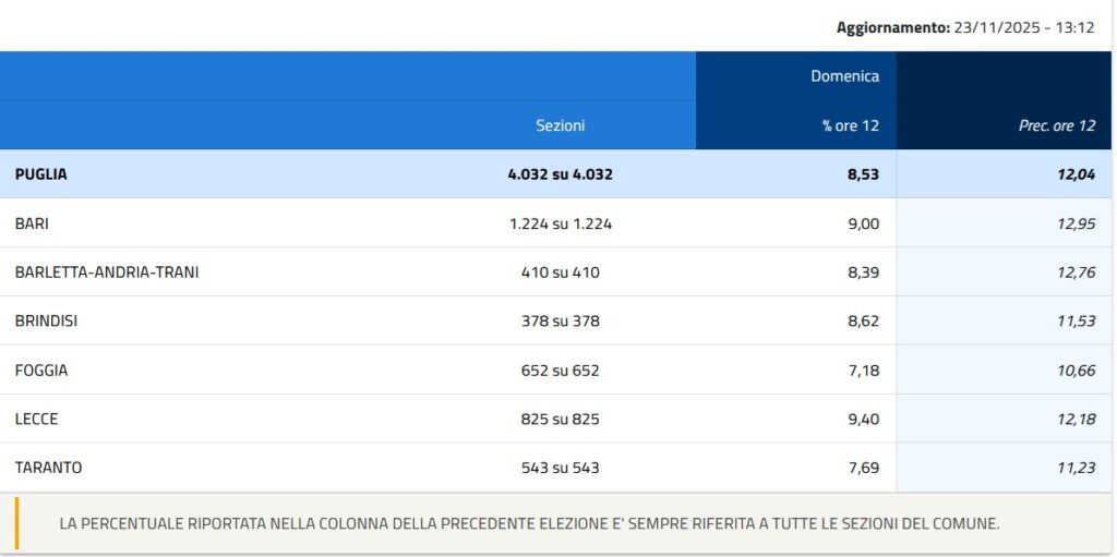 Corsa a quattro in questa tornata, che a mezzogiorno ha registrato un’affluenza alle urne dell’8,53%, in calo di più di tre punti percentuali rispetto alle precedenti Regionali, quando alla stessa ora l’affluenza si è attestata al il 12,04 % .