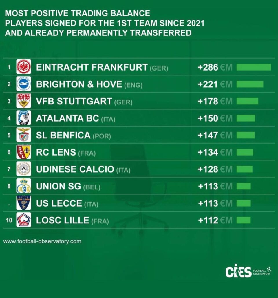 LECCE – Il Lecce è tra i club più intelligenti al mondo sul mercato. Lo sostiene Il CIES Football Observatory che è uno degli istituti più autorevoli al mondo in ambito calcistico. Da indagini svolte risulta che la società giallorossa è tra i primi dieci club al mondo per saldo positivo tra acquisti e cessioni dal 2021 ad oggi con un risultato di +113 milioni di euro. Un dato che premia e avvalora il grande lavoro di scouting, visione e sostenibilità del club