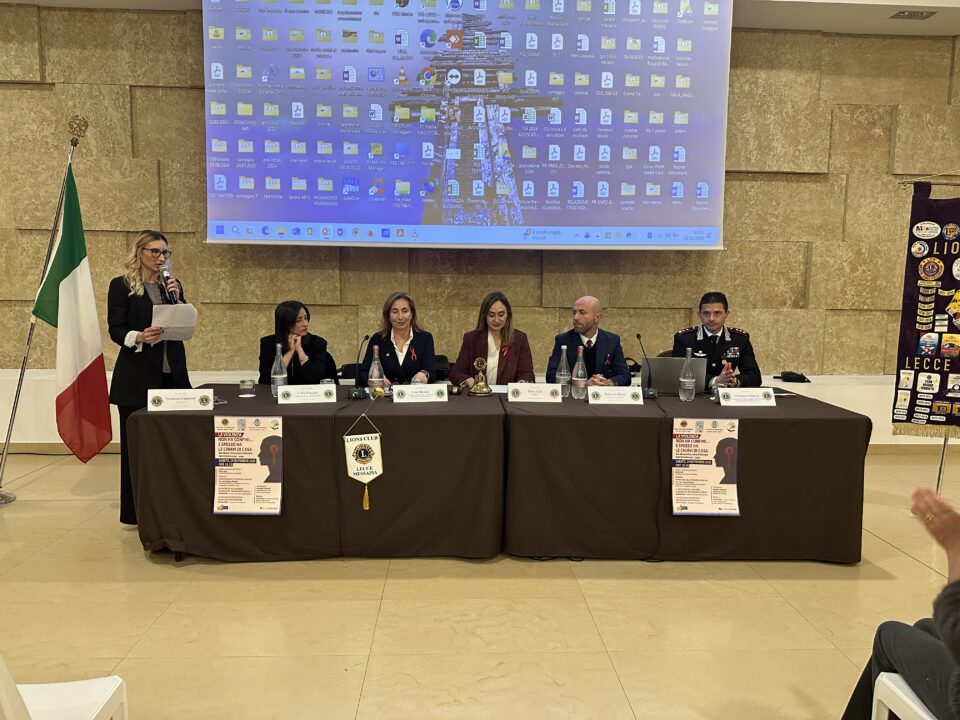 LECCE – Il tema della violenza domestica e delle sue molteplici forme è stato affrontato nel corso dell’incontro-dibattito organizzato dal Lions Club Apulia ed intitolato “La violenza non ha confini e spesso ha le chiavi di casa. Un momento di riflessione e confronto per sottolineare come spesso la violenza non si manifesta con eventi eclatanti, ma si insinua nel silenzio delle relazioni ed in altri aspetti a volte impercettibili. All’evento, presente il comandante del Nucleo operativo dei Carabinieri di Lecce tenente colonnello Cristiano Marella, che ha sottolineato l’importanza degli interventi tempestivi nelle situazioni di rischio