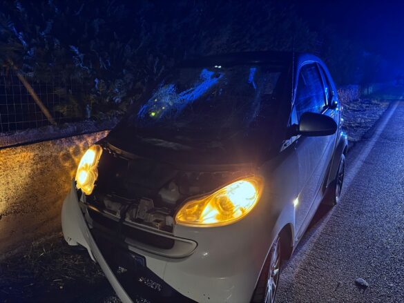 Subito dopo la smart è sopraggiunta un’altra auto, una Panda, che ha travolto la bici che era rimasta sulla carreggiata.