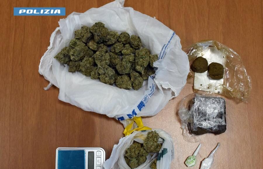 A Gallipoli il personale del commissariato il 6 dicembre scorso è intervenuto presso l’abitazione di un 31enne che aveva richiesto aiuto per un malore. All’arrivo dei poliziotti il giovane era in evidente stato di agitazione, causata, a sua dire, dall’assunzione di cocaina. Da qui la perquisizione domiciliare che portato al rinvenimento della droga: 64 grammi di hashish, 6 grammi di marijuana e 1 grammo di cocaina, già suddivisi in dosi e   un bilancino di precisione, mentre in uno spazio esterno all’abitazione sono stati trovati 35 grammi di marijuana. Procedendo nella perquisizione, in un ripostiglio sono state rinvenute anche cinque scatole ancora sigillate, contenenti materiale pirotecnico di diversa tipologia e in cattivo stato di conservazione che ha richiesto l’intervento degli artificieri di Brindisi. Tutto il materiale è stato così posto sotto sequestro e il 31enne è stato denunciato