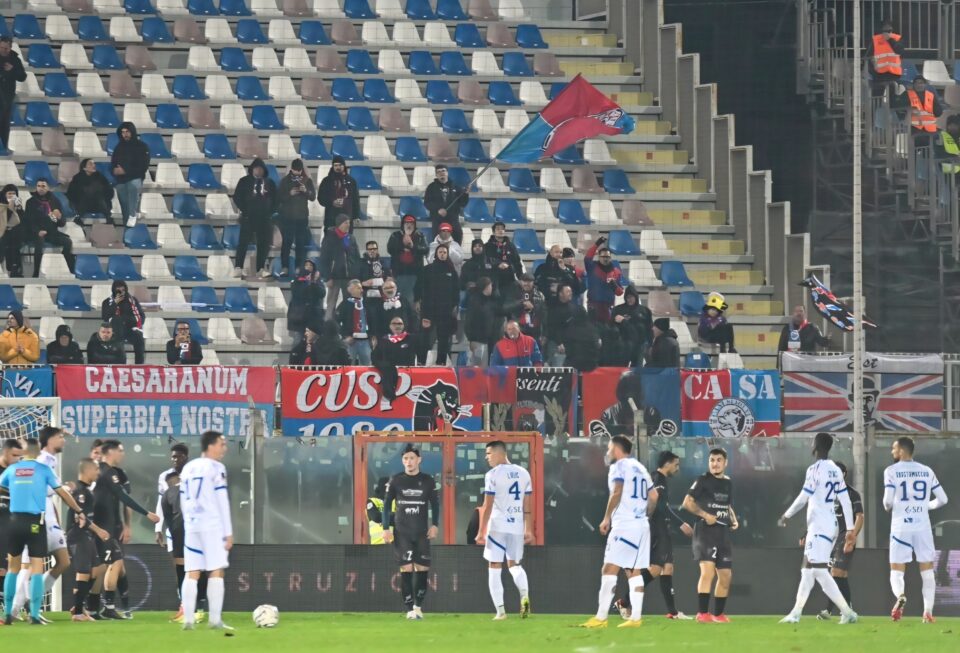 CROTONE – Il Casarano esce sconfitto, 2-0, dallo “Scida” nel match contro il Crotone, nel monday night valido per la 18esima giornata di serie C. In gol per i padroni di casa Murano, al 28′, e Zunno al 51′, entrambi nel primo tempo. La squadra di Di Bari resta ferma così a quota 25, quella di Longo la supera e sale a 27. Gli squali rialzano la testa, tornano a vincere, ma è gelo con i tifosi, con la curva che al gol del vantaggio ha voltato le spalle alla squadra. I rosso-azzurri, invece, cadono dopo l’ultimo pareggio, 1-1, con il Latina, e non riescono a portare a casa tre punti d’oro in chiave playoff.
