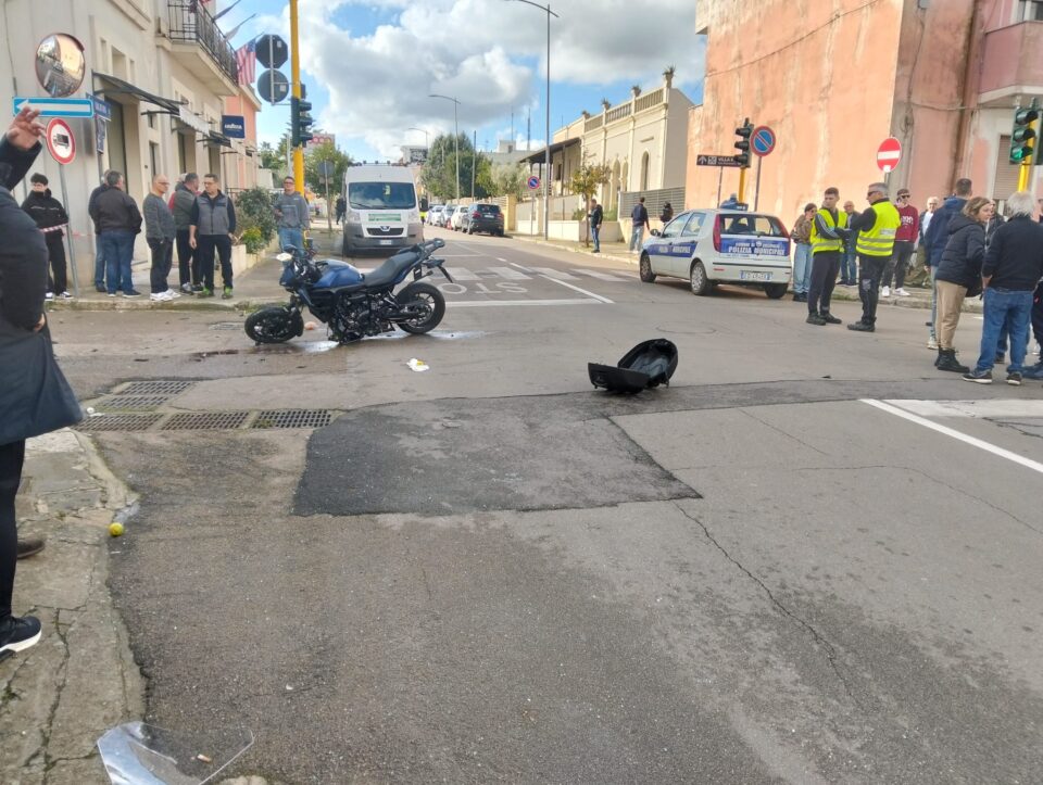 COLLEPASSO – Violento impatto all’ora di pranzo tra una moto e un’auto, a Collepasso. Teatro del sinistro stradale è stato ancora una volta,  l’incrocio tra via Pascoli e la centralissima via Roma, già all’attenzione della cronaca per numerosi incidenti in passato. Neppure l’aver semaforizzato l’intersezione è servito a evitare l’ennesimo incidente nel quale ha avuto la peggio un 65enne del posto, alla guida di una potente moto. L’uomo è stato trasferito al “Vito Fazzi” di Lecce per ulteriori accertamenti. Da verificare la dinamica del sinistro, dai primi rilievi effettuati dai carabinieri della locale stazione, il mezzo a due ruote proveniva dalla strada principale, via Roma, quando da via Pascoli è sopraggiunta l’auto condotta dalla donna, fortunatamente illesa, che lo ha travolto. Da stabilire le responsabilità dei mezzi e delle persone rimaste coinvolte.